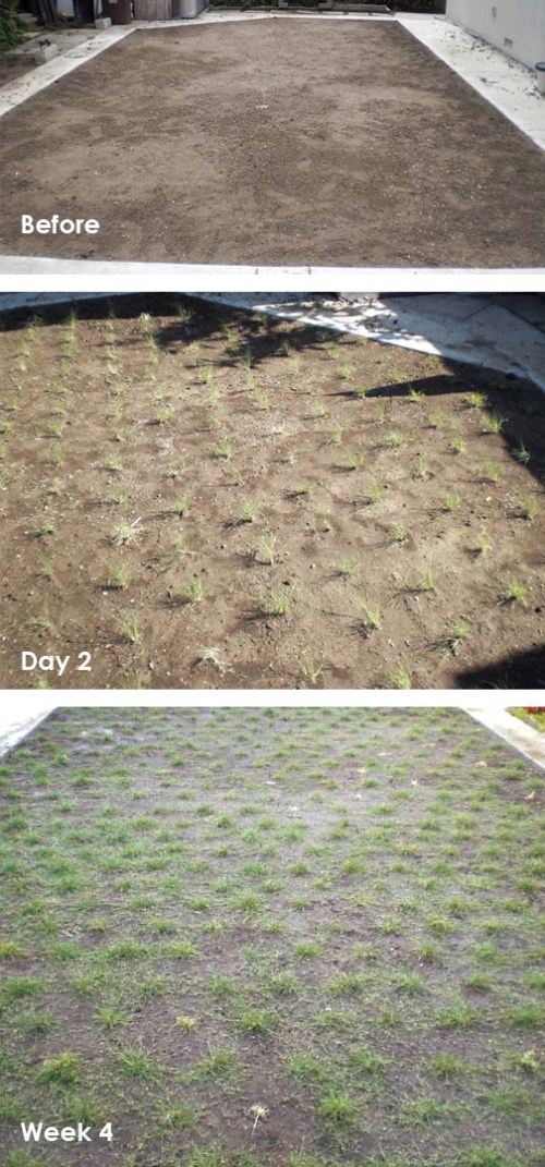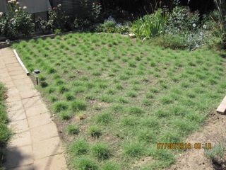 We had an email come our way from a customer who was concerned about the “barbed shaped extensions” coming out of the California Buffalograss plugs he had installed 4 weeks prior. He thought they were most likely weeds, but wanted to double check before he yanked them out. So, just in case the same thought may have crossed your mind – worry not! These are actually runners that the grass sends out in order to spread itself. The runners root into the ground as they go and from that more grass will grow!