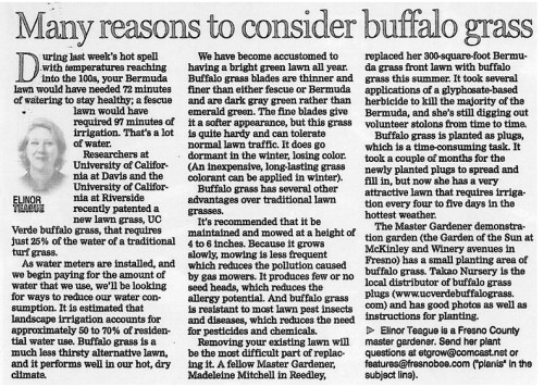 California Buffalograss was mentioned in our local newspaper! Click on the article for a larger image.